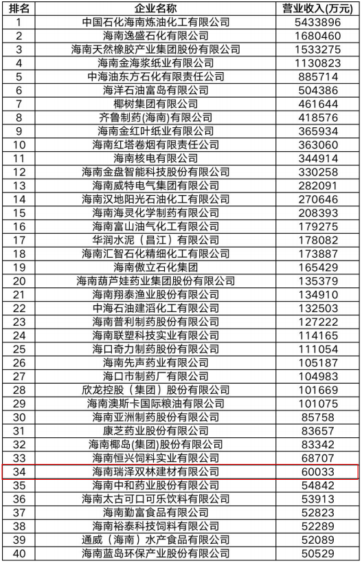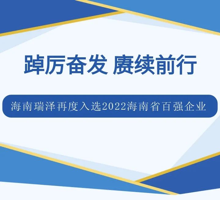 2022年11月8日,“2022海南省企业100强”正式发布,海南瑞泽新型建材股份有限公司以位居第54名连续十一年入选海南省百强企业,旗下全资子公司海南瑞泽双林建材有限公司以第34名入选海南省制造业企业40强。