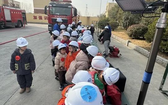 走进公司应急救援队,与队员们进行了一次“零距离”接触。高大的消防车、整齐划一的救援器材、还有身穿帅气制服的队员叔叔们,都让小朋友们兴奋不已。