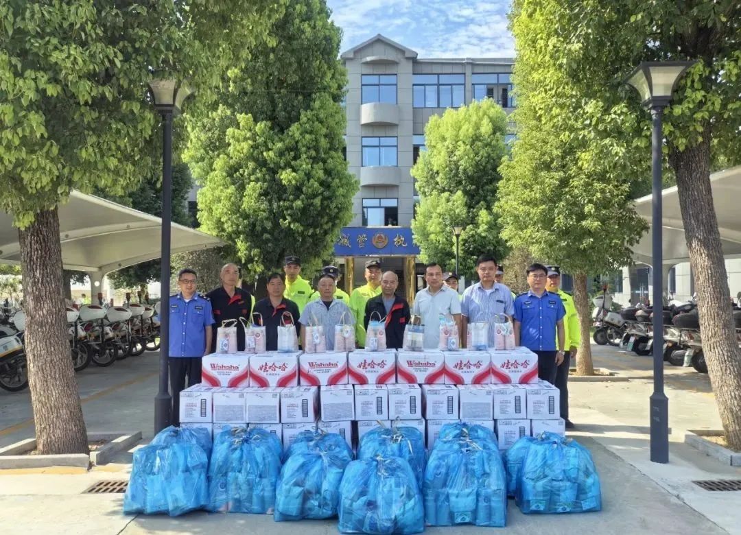 活动现场,金禾实业精心准备了矿泉水、藿香正气水、风油精、清凉油、毛巾、香皂等在内的多种实用防暑降温物资。程多俊主席向一线工作者表达了诚挚的敬意与关怀:交警、城管及环卫工人们常年奔波在街头巷尾,无论是扮靓优美有序的市容景观,还是守护宜居宜业的城市环境,都凝结着大家的辛勤付出。金禾实业希望通过这份心意,表达对城市守护者的支持与感谢,同时也提醒大家,在夏季高温工作中务必注意防暑降温,保障自身安全。