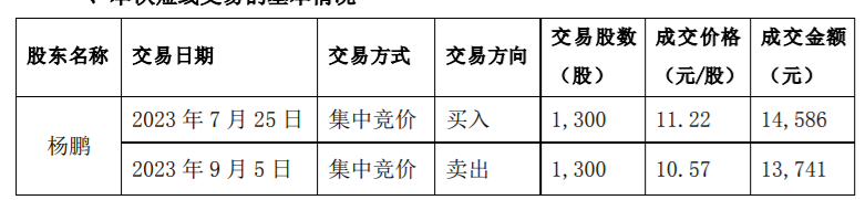 本次短线交易杨鹏先生产生的收益为-845元(计算方法:卖出成交金额-买入成交金额=13,741-14,586=-845元),杨鹏先生本次短线交易未获取收益。截至目前,杨鹏先生不再持有公司股票。
