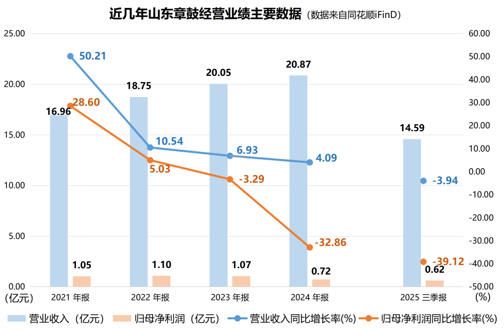 也正是在2024年,山东章鼓的归母净利同比大幅下降32.86%。彼时,这一降幅创下公司上市以来的最大降幅。