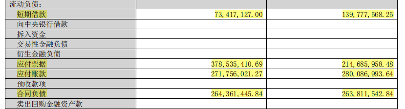 除此之外,公司的现金压力也在增加。截至2022年9月30日,盛通股份的短期借款、应付票据、应付账款、合同负债分别为7341.71万元、3.79亿元、2.72亿元、2.64亿元,合计接近10亿元,但公司期末的现金及现金等价物仅有1.39亿元。