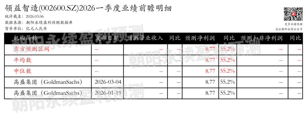 截至2026年03月06日,根据朝阳永续季度业绩前瞻数据:
