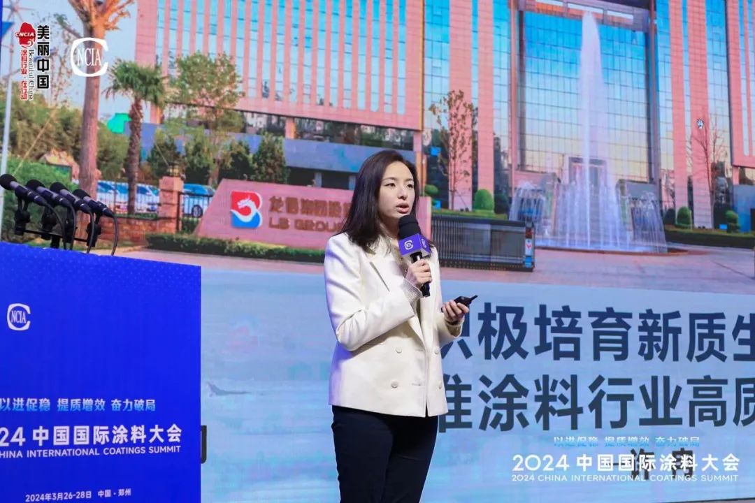 当日下午,龙佰集团副董事长许冉在会上作《积极培育新质生产力,助推涂料行业高质量发展》的主题分享。她介绍钛白行业整体概况和集团的产业布局、发展理念,表示无论是硫酸法,还是氯化法,钛白生产工艺均遵循绿色可持续发展的要求与使命,节能、减排、降耗,提高资源利用率,实现与自然和谐共处。龙佰特色的产品体系能够满足多样化的需求,根据涂料应用方向的变化,龙佰将以环保政策为导向,协同下游客户需求创新战略合作,开展可持续发展行动,并以本次大会为契机,加强产业链上下游的合作与交流,共享资源,构建产业绿色低碳高质量发展格局。