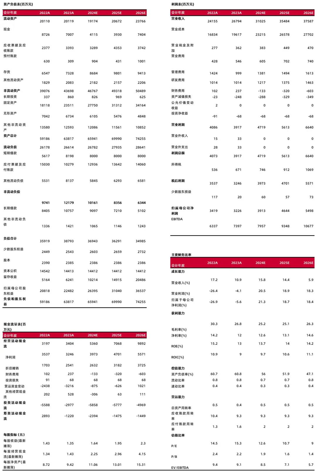 公司布局硫酸法钛白粉、氯化法钛白粉、海绵钛及高端钛合金,拓展“钒、锆、铁、钪、钴”等钛衍生品领域及智能制造、新能源材料等新兴产业。钛白粉产销不断提升,兼顾国内国外两个市场,24Q1业绩大幅改善,公司是全球最大的钛白粉生产商,掌握优质矿产资源及深加工能力,依托全产业链优势,在钛白粉行业不断复苏下盈利能力或持续提升。预计公司24-26年归母净利分别为39.13/46.44/54.98亿元,对应公司4月24日市值495亿元,2024-2026年PE分别为12.6\10.7\9倍,首次“买入-B”评级。