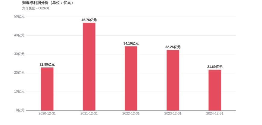 利润角度分析,2020年龙佰集团实现归母净利润22.89亿元,2024年21.69亿元。利润水平在经历2021年的大幅增长后,近三年呈现下滑趋势。