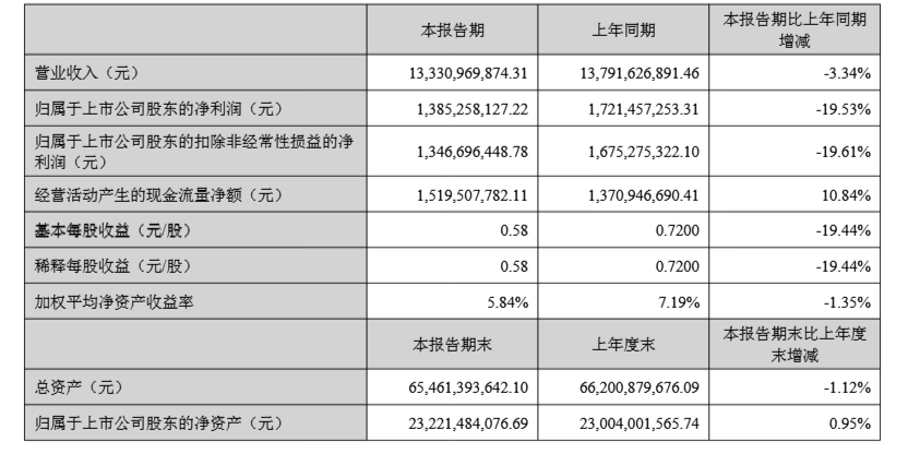 8月18日,龙佰集团发布的半年报显示,今年上半年公司实现营业收入133.31亿元,同比下降3.34%;归属于上市公司股东的净利润为13.85亿元,同比下降19.53%。