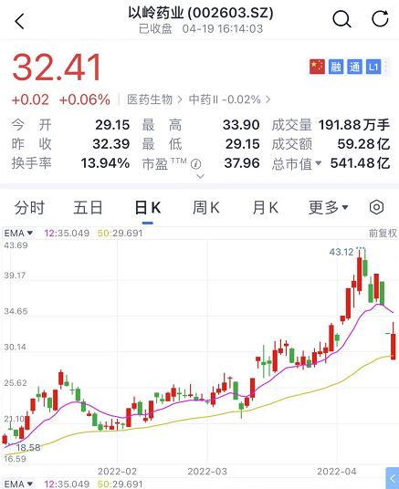 根据该公司财报,2021年前三季度,以岭药业连花清瘟产品实现营业收入33.7亿元,占公司总营业收入的41.6%。今年以来,以岭药业股价快速攀升,累计最高涨幅为112%,市值一度达至720亿元,创下历史新高。
