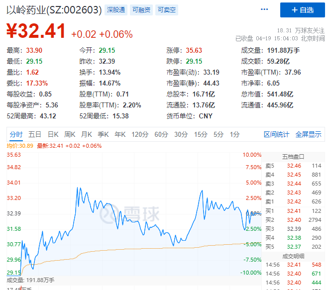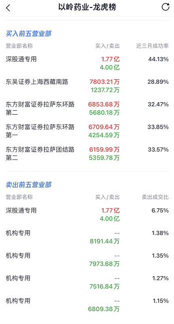 受消息影响,15日及18日,以岭药业连续两个交易日跌停。19日,以岭药业跌停开盘后震荡反弹,收盘微红,盘后数据显示,今日四机构合计卖出3.05亿元,深股通卖出3.99亿元并买入1.77亿元。