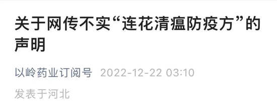 网传“连花清瘟防疫方”不实