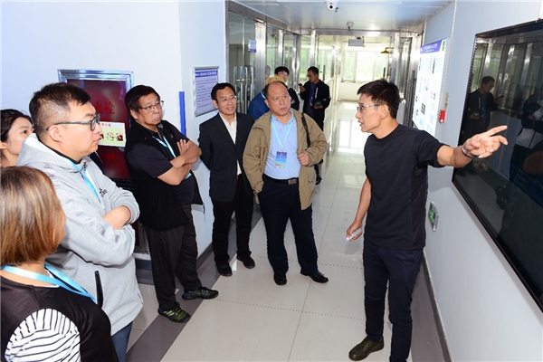 在以岭药业抗衰老研究实验室,以岭药业研究院新药研究中心副院长侯云龙博士(右一)向海外媒体代表介绍中医药抗衰老科研进展。