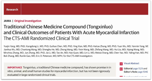 目前,该项研究论文已发表在全球医学期刊《美国医学会杂志》(JAMA),2022年影响因子 120.7。资料显示,《美国医学会杂志》是由美国医学会主办的综合性临床医学杂志,与《新英格兰医学杂志》(NEJM)、《柳叶刀》(The Lancet)和《英国医学杂志》(The BMJ)并称全球四大医学名刊。这也是中成药历史首次登上国际顶级期刊。