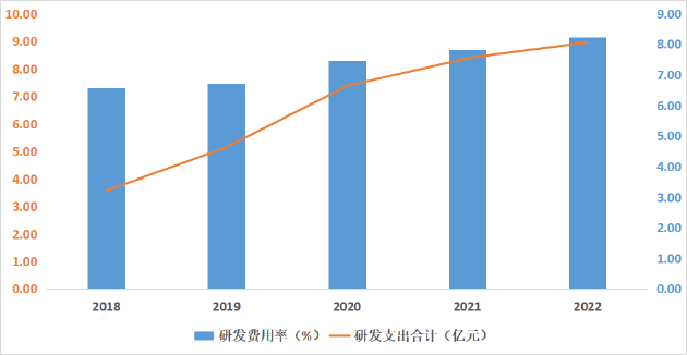 Wind数据显示,2018年-2022年,以岭药业研发费用率持续提升,研发支出合计分别为3.57亿元、5.15亿元、7.37亿元、8.38亿元、8.95亿元,研发支出年复合增长率达25.83%。无论是研发支出绝对数额,费用占比还是研发支出增长率,以岭药业在同行业可比企业中排名均稳居前列。
