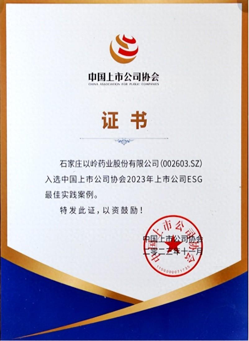 ESG理念与我国可持续发展战略、双碳目标愿景和生态文明建设的方向相一致,与二十大报告提出的“坚持可持续发展”“加快发展方式绿色转型”等一系列重要发展理念高度契合。近年来,以岭药业一直“践行ESG理念,从源头保障药材质量,初心为本良药为民”实践案例收录于中国上市公司协会组织汇编的《中国上市公司ESG最佳实践案例2023》丛书中。