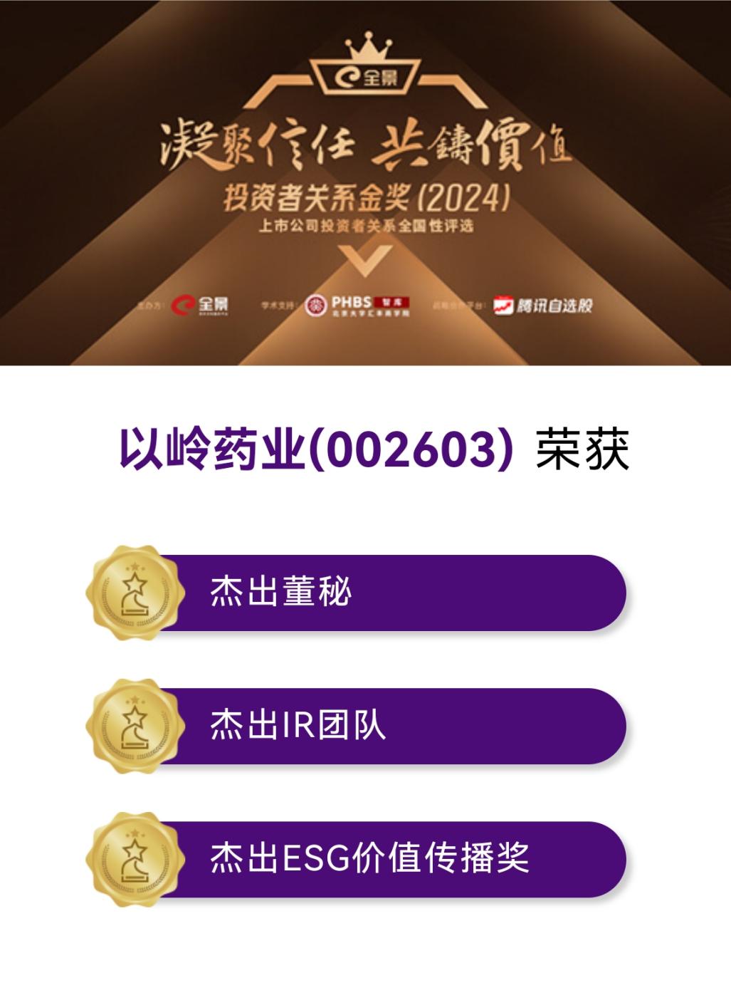 本届全景投资者关系金奖评选经过严格筛选和综合评估,旨在表彰在投资者关系管理、价值传播、公司治理等方面表现卓越的上市公司和个人。以岭药业在此次评选中脱颖而出,充分体现了市场对公司投资者关系管理工作的高度认可。