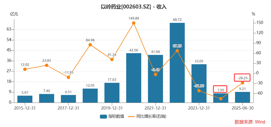 不过,近年来,以岭药业的业绩波动极为剧烈。2022年公司曾实现23.62亿元的净利润高峰,但2024年却亏损7.25亿元,这也是公司自2011年上市以来首次出现年度亏损。到了2025年业绩虽然恢复增长,营收增速又不及预期。