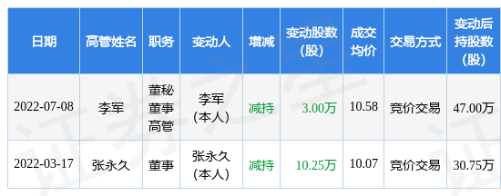 根据7月11日市场公开信息、上市公司公告及交易所披露数据整理,大连电瓷(002606)最新董监高及相关人员股份变动情况:2022年7月8日公司董秘,董事,高管李军共减持公司股份3.0万股,占公司总股本为0.0068%。变动期间公司股价上涨9.98%,7月8日当日收盘报10.69元。