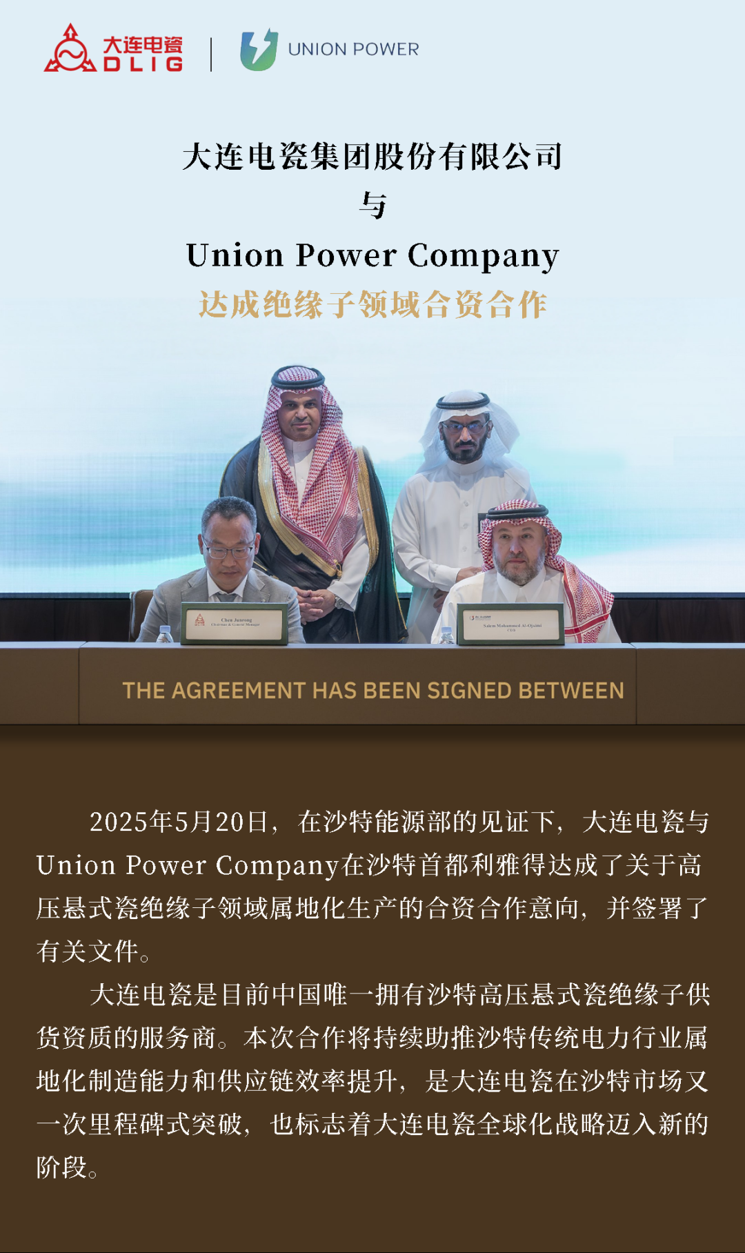 大连电瓷与Union Power Company达成绝缘子领域合资合作