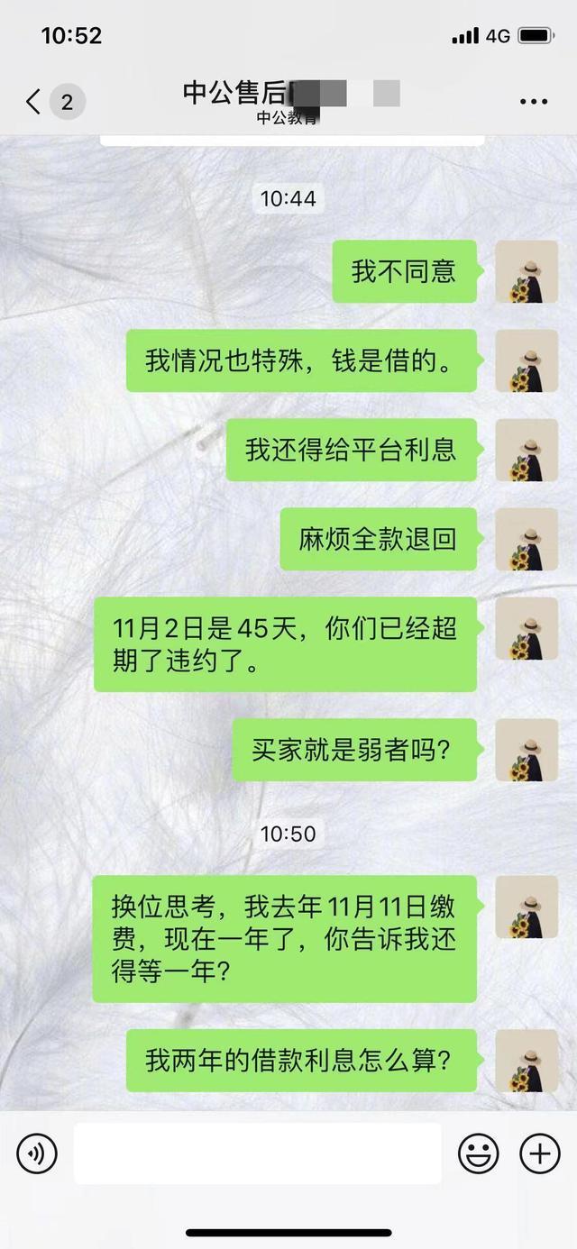 甚至多次拨打中公教育全国统一咨询热线和曾经的售课老师电话,也始终无人接听。学员们甚至在各个平台投诉、举报、起诉,但也收效甚微。打出去的每一个电话与文字,就像层层深雪中的石子,早已被淹没。