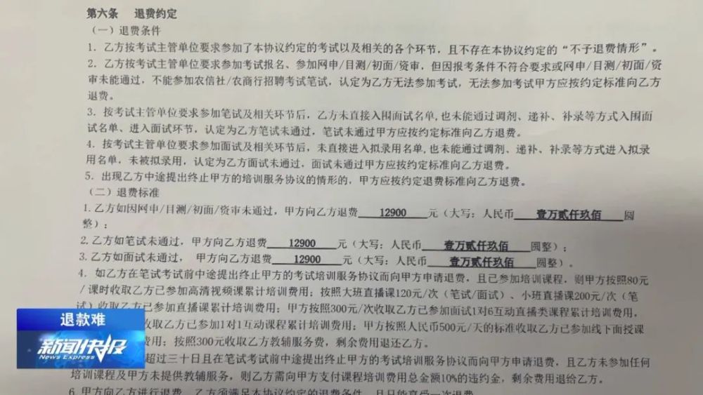 考试当中出现笔试或者面试不过,原来缴纳的12900元将原数退回,但是考试成绩出来之后,中公教育并未按照要求进行退还。