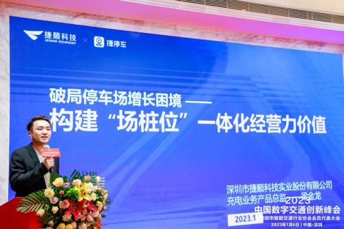 本次峰会中,两百多位交通业界人士及行业专家共同交流互动,探索智能交通新模式。会上,捷顺科技充电业务产品总监梁金龙围绕《破局停车场增长困境——构建“场桩位”一体化经营力价值》主题开展了精彩演讲。