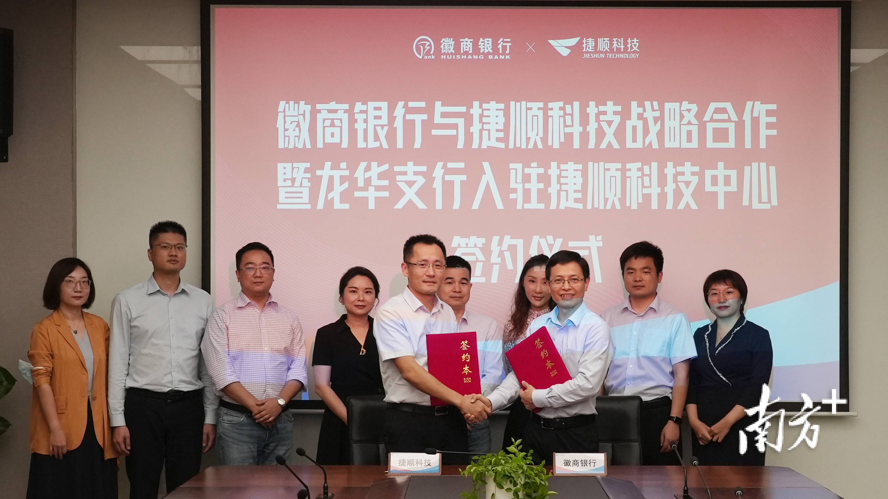 4月18日,徽商银行深圳分行与捷顺科技战略合作暨龙华支行入驻捷顺科技中心签约仪式在捷顺科技总部隆重举行。双方将在智慧停车、智慧园区、车主金融、广告与大数据及各类金融业务领域展开全方位合作,共同打造高质量发展新生态。徽商银行深圳分行副行长史学岗、捷顺科技总经理赵勇分别代表双方签约。