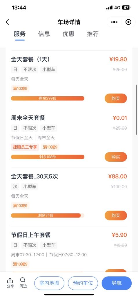 二是“车位优选”车位运营合作增收方案。这是捷停车基于大数据技术及车位运营服务的成熟经验,为车场方推出的精细化车位运营合作增收方案,可拉通车场车位资源和车主停车需求,高效匹配供需关系,进而提升车场整体营收。记者体验发现,进入捷停车微信小程序,下方一级栏目就是【车位优选】。进入界面,根据手机定位,页面即显示周边的停车场停车套餐。不管是晚间车位闲置的商业停车场,还是小区晚间停车位紧缺的车主,都可以通过这个平台满足需求,前者可在此发布可停车服务信息,后者可通过此平台购买意向停车套餐解决停车问题。可停车服务信息相当多元化,有白天套餐、夜间套餐、周末全天套餐、夜间单词卡、夜间月卡等。