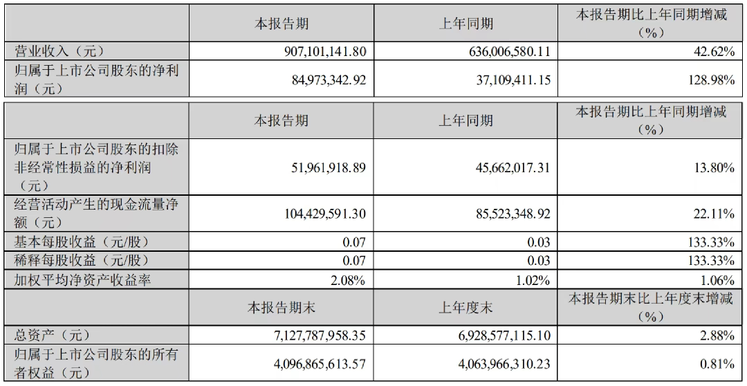 东方精工2023年一季度报告显示:尽管宏观环境仍然面临较大的经营挑战,但东方精工凭借多样化的业务组合以及卓越的运营能力,在今年一季度依旧创造了优异业绩:营收9.07亿元,同比增长42.63%;归母净利润8497.33万元,同比增长128.98%。