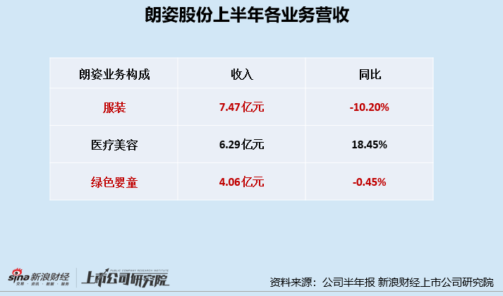 对于朗姿股份而言,服装生意和医美新/次新机构都是拖累公司业绩的因素。分业务来看,2022年上半年,服装业务创收同比下降10.20%。