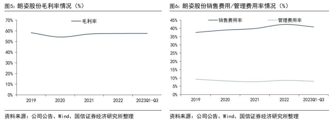 公司前三季度实现毛利率57.58%,调整口径下同比去年+1.01pct,实现稳步提升。费用率方面,前三季度销售费用率/管理费用率分别为40.91%/8.01%,调整口径下分别同比-1.16pct/-0.64pct,整体费用率实现优化。现金流方面,前三季度实现经营性现金流净额5.86亿元,调整口径下同比去年+83.76%。