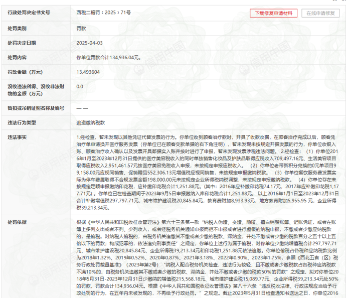 上市公司误导宣传被罚??医美业务屡陷逃税、医疗事故与虚假宣传