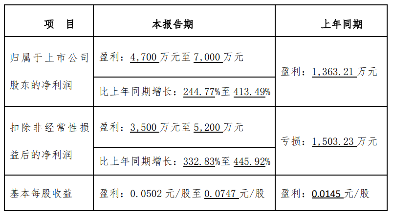 1月24日公司发布的业绩预告显示,2021年公司实现归母净利润4700万-7000万、同比增长244.77%-413.49%,实现扣非净利润3500万-5200万、同比增长332.83%-445.92%。