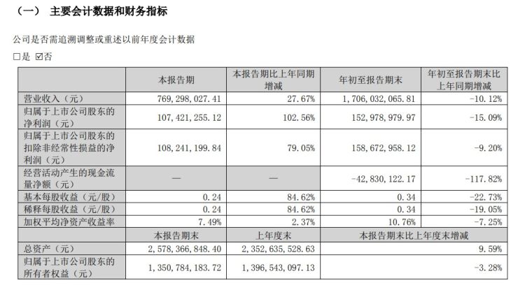 10月13日晚间,哈尔斯(002615)发布三季度业绩公告,显示公司第三季度实现营业收入7.69亿元,同比增长27.67%;净利润约1.07亿元,同比增长102.56%。