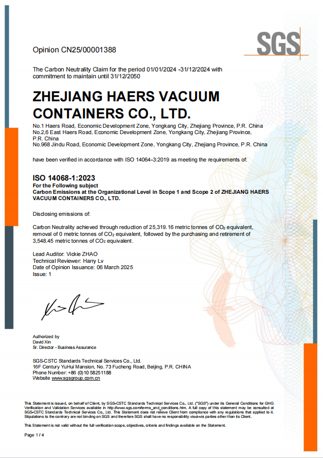 哈尔斯作为中国杯壶行业的领军企业,此次获得保温杯壶行业首个ISO 14068组织碳中和认证,标志着其在推动绿色经济与响应国家双碳目标的行动中走在了行业前列。