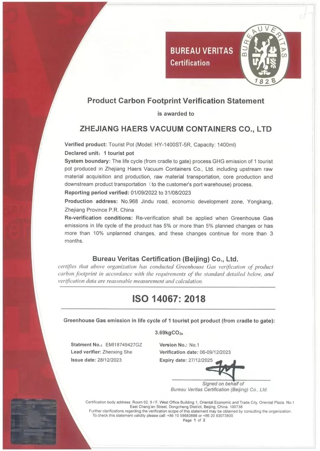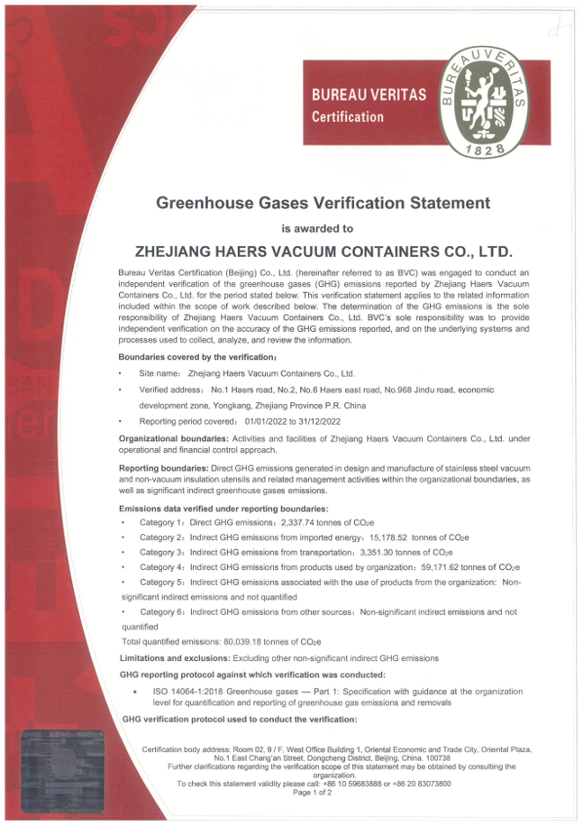 从产品设计、原材料选择到运输及回收环节,哈尔斯均贯彻绿色理念,此前获得由必维国际检验集团(Bureau Veritas,以下简称“必维”)颁发的杯壶行业首张温室气体核查声明以及不锈钢杯壶类目的首张产品碳足迹证书,这一声明是哈尔斯量化产品全生命周期碳排放,践行绿色可持续发展道路的证明。哈尔斯可持续发展正将低碳基因植入每只杯壶的生命周期。
