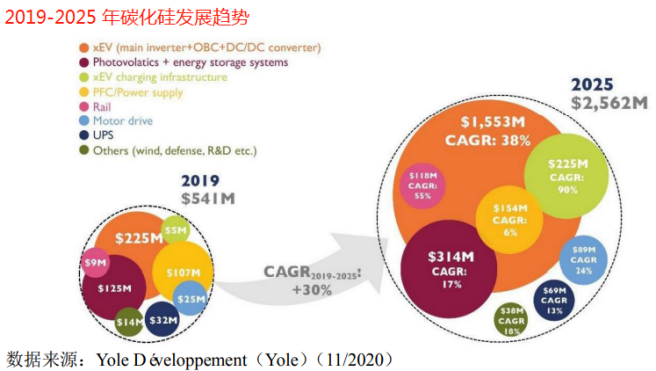 根据产业研究机构YoleDéveloppement(Yole)的相关预测,碳化硅(SiC)功率半导体市场产值到2025年将达到25.62亿美元,该市场在2019年到2025年之间的年复合成长率达到29.59%。因此,广阔的市场前景为本项目实施提供了良好的市场基础。