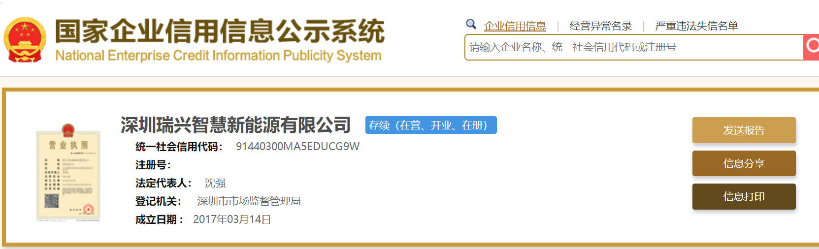 瑞兴智慧新能源成立于2017年3月14日,法定代表人为沈强,注册资本为2430万元人民币。公司经营范围包括太阳能电站、生态农业投资建设开发;能源合同管理、新能源技术开发等。
