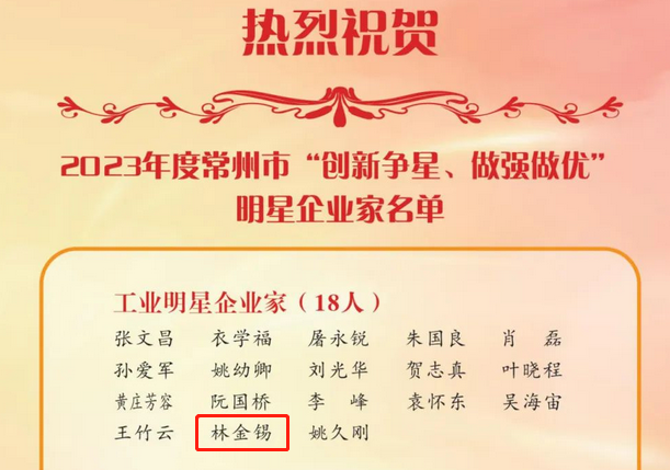 亚玛顿因入选“国家级服务型制造示范企业”和常州市“数字经济示范企业”荣登光荣榜。大会上,亚玛顿被授予常州市“星级企业”荣誉称号,董事长林金锡被授予2023年度常州市“创新争星、做强做优”明星企业家荣誉称号。