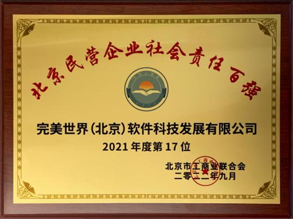 近日,北京市工商联召开2022北京民营企业百强发布会,发布北京民营企业“1+4”百强榜单。完美世界凭借在科技方面的持续创新,以及在疫情防控、乡村振兴、绿色低碳发展等社会责任方面的突出表现,荣登“北京民营企业科技创新百强”“北京民营企业社会责任百强”两项榜单。