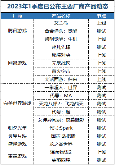 当《女神异闻录:夜幕魅影》3月首测的消息正式公布时,完美已经毫无悬念地成为2023年一季度新品动作频率最高的公司。有五款新游在当季开启测试,新游测试/上线数量稳居行业第一。根据已披露动态的产品情况,完美在产品数量上甚至已超越游戏龙头腾讯并和网易比肩,而在A股阵营中,同样是独一档的存在。