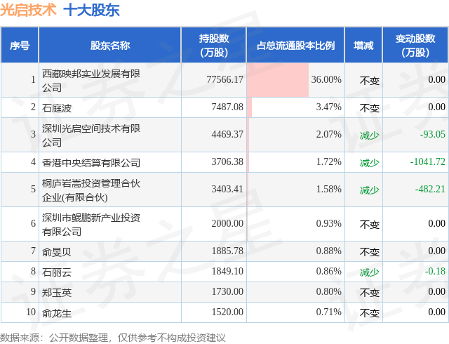 根据光启技术2023年三季报公布的十大股东详情如下:
