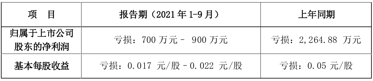 挖贝网10月14日,ST仁智(002629)近日发布2021年前三季度业绩预告公告,预计2021年前三季度实现归属于上市公司股东的净利润为亏损700万元–900万元,比上年同期亏损减少69.09%–60.26%。