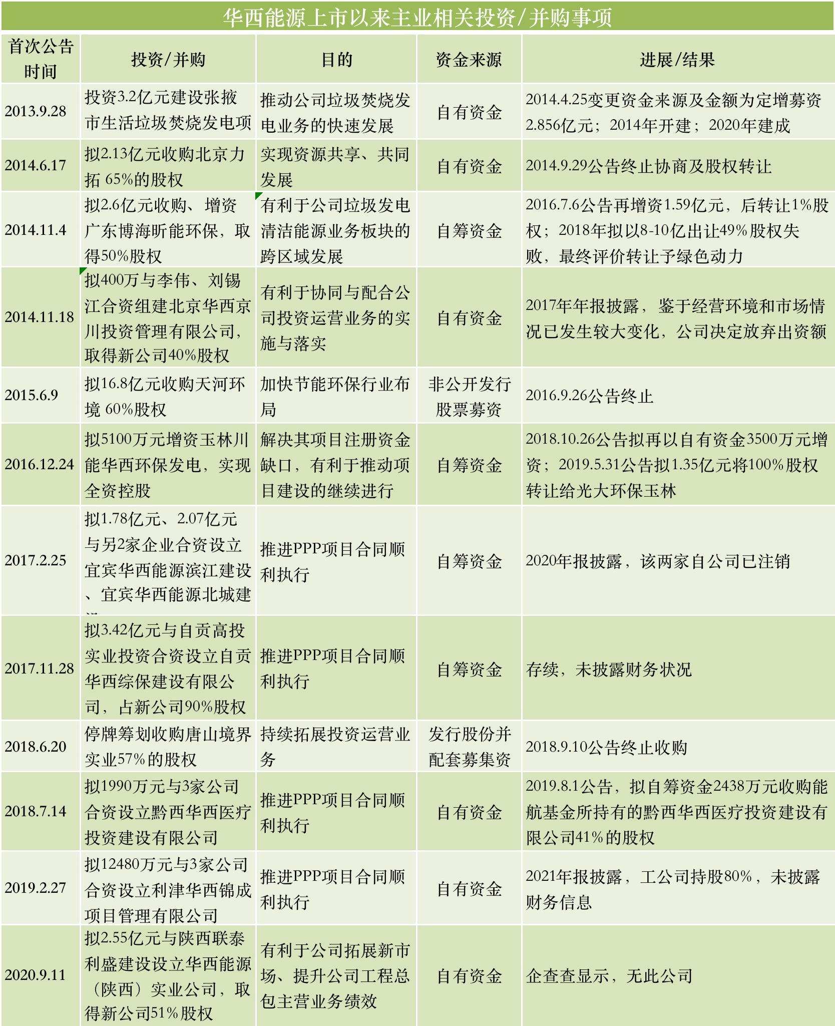 (华西能源上市以来主业相关投资/并购项目,资料来源:公开信息)