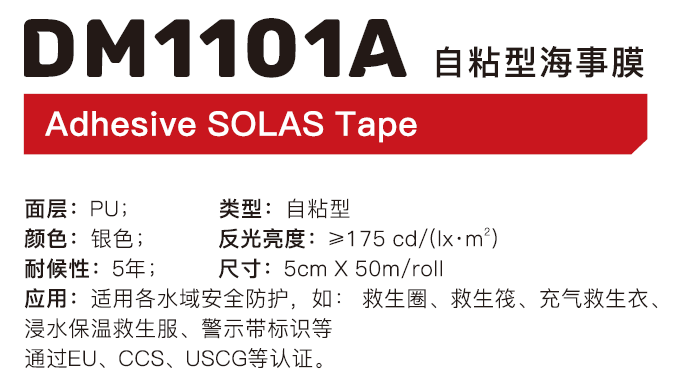海事膜是一种专用于海上救生器具的反光材料,可以显著提升物体或穿着者在海上夜间视线不良环境中的可视性,大大提升落水人员的搜救成功比例,已经广泛在各种海事救生用品中使用。