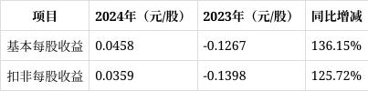 基本每股收益为0.0458元/股,上年为-0.1267元/股,这一转变反映了公司盈利能力的提升,为股东创造了正收益。扣非每股收益为0.0359元/股,也显示出公司核心业务盈利能力的增强。