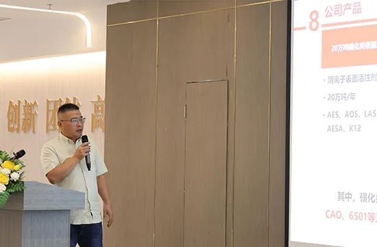 广东赞宇总经理葛成梁介绍了广东赞宇概况,并就质量管理体系、区域优势与产品及配套设施进行重点介绍。与会嘉宾观看了赞宇科技业务的板块和主要产品介绍,进一步了解赞宇科技集团的业务规模和布局。