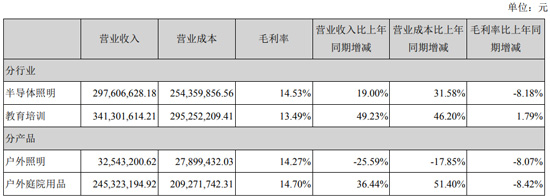 其中半导体照明业务实现营收2.98亿元,同比增长19%。但值得注意的是,上半年勤上股份照明业务毛利率为14.53%,同比下降了8.18%。