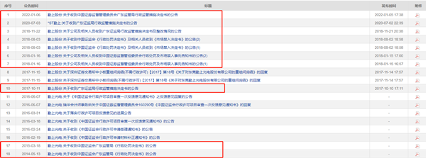 值得注意的是,这不是勤上股份第一次涉及行政监管措施。据不完全统计,自2014年以来,勤上股份共发布10起有关行政处罚或行政监管措施的公告,深交所中小板公司管理部对其发出2份监管函。