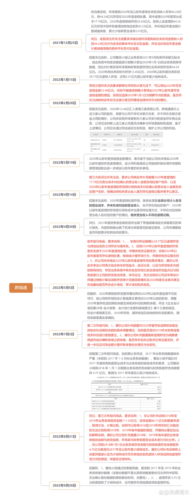 题外话:跨境通为了消除2020年度非标审计意见,自爆虚增存货的行为导致信披违规。事实上对于存货非标消除方案,可参考某集团上市公司案例,某年海外销售大面积退回十几亿,后通过海外库存出售回笼个把亿,免去了审计师盘点和核查的烦恼。现自爆2017年度存货数据就失准,或许迎来投资者诉讼的烦恼。