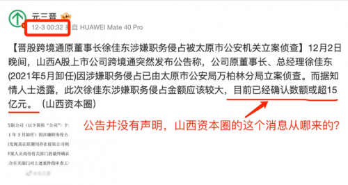 公告于12月3日凌晨发布,给了媒体和股民当头一棒,有些人还在熟睡中,有些网友却先发制人,似乎预知到即将发生的事情,公告内容没有的,怎么就先知了,难不成周公托梦或是真有什么提前组织